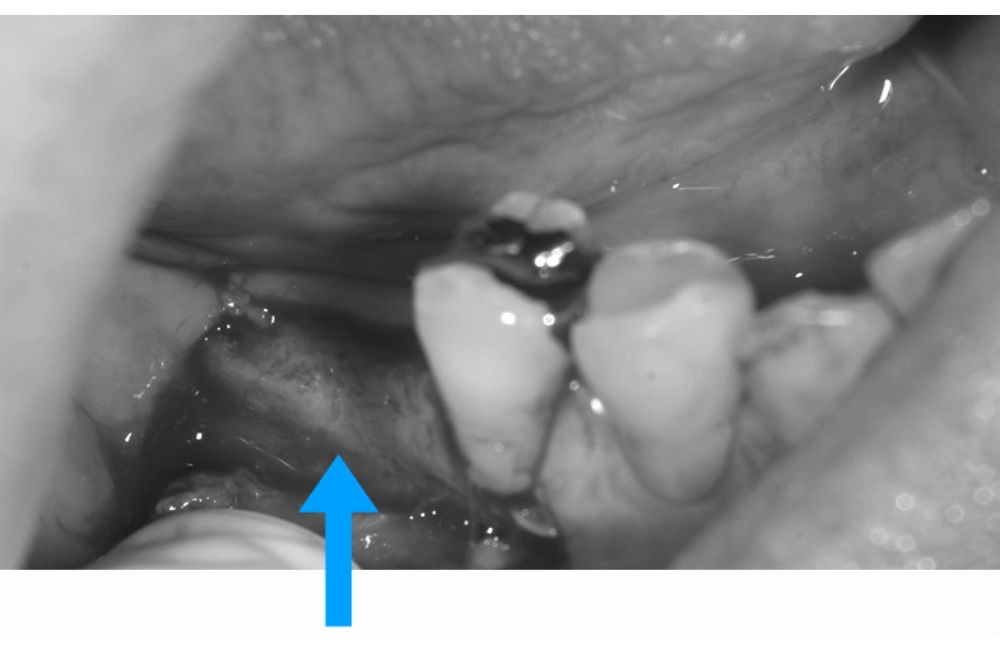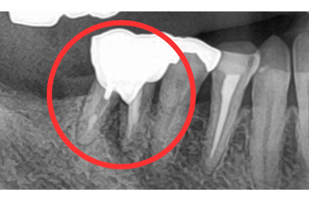 前歯が反対咬合というかみ合わせ、力のリスクがありましたが、ある時から右下に違和感が出て、診断の結果、右下の歯が歯根破折(歯のヒビ)となり抜歯せざるを得ない状況でした。
