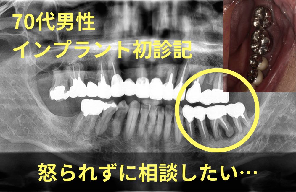 「インプラントをしたいけれど、年齢や骨の状態が気になる…」「相談してみたいけれど、歯科医院で怒られた経験があって不安…」 そんなお気持ちを抱えながらも、なんとか一歩を踏み出した患者さんがいらっしゃいました。今回ご紹介するのは、73歳の男性のケースです。 初診問診(会話形式) 診療室に入ってこられた患者さんは、少し緊張した表情をされていました。 患者さんの顔に …