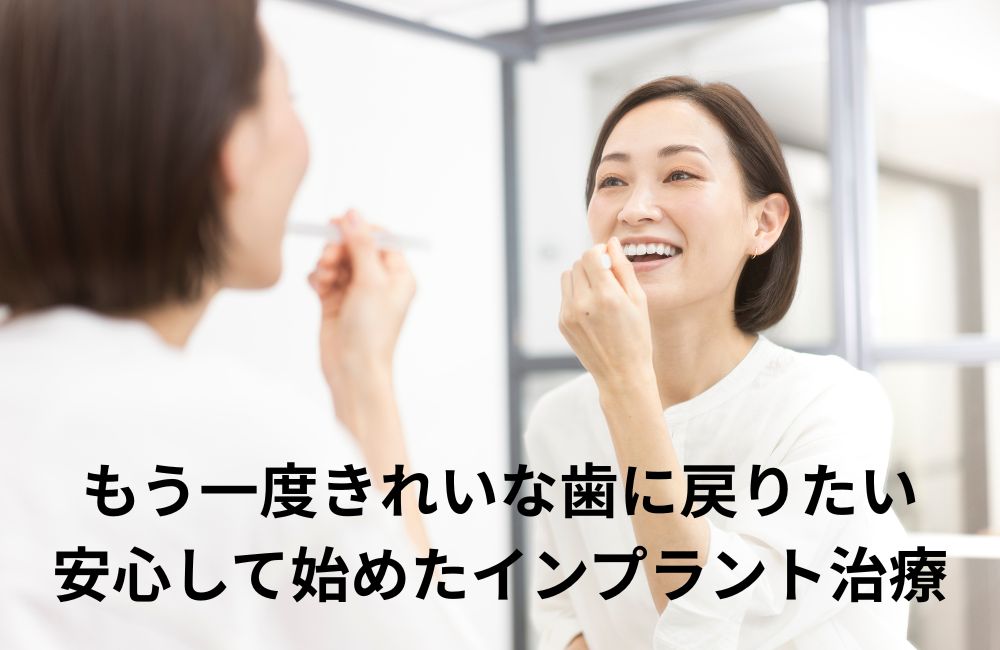初診時の様子 「骨が少なくてインプラントは難しいかもしれません」そう言われると、多くの方は不安を感じるでしょう。しかし、友人がこの医院でインプラントを受け、健康的に何でも食べられるようになった話を聞き、「自分もあの笑顔になりたい」と思い、相談に踏み切りました。 初診問診 検査診断 選択肢整理 不安から納得 正直、痛みや失敗が心配でした。でも先生の説明と、友人 …